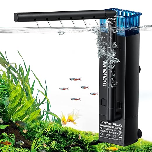 CHERLAM Aquarium Surface Skimmer, 3W Fish Tank Surface Skimmer For Planted Aquarium
