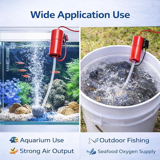 Petzlifeworld USB Aquarium Air Pump Portable Oxygen Pump, Silent Mini Air Compressor with Air Stone & Tube, Low Power 1W Quiet Aerator for Fish Tank, Outdoor Fishing & Aquarium Use (Random Color)