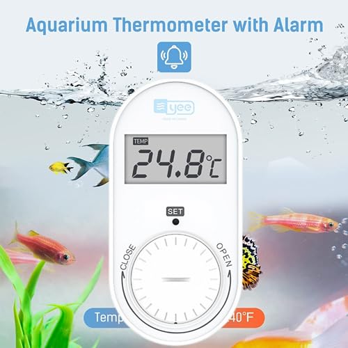 YEE Premium Stick On Tank Wireless Digital Alarm Thermometer For Aquarium and Reptile and Indoor With High and Low Temp Set Alarm Indicator