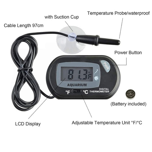 PetzLifeworld Digital LCD Aquarium Thermometer with Suction Cups | Battery Replaceable | Aquarium Fish Tank Temperature Monitor