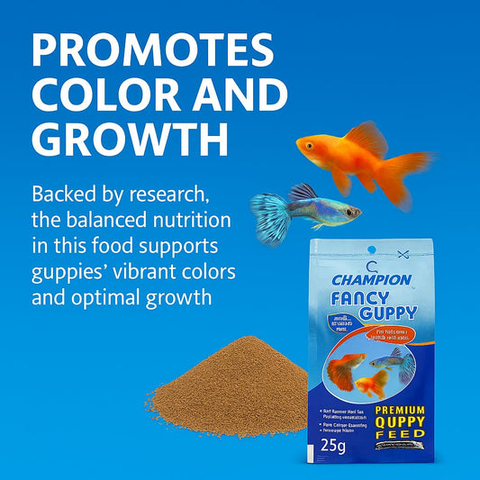 PetzLifeWorld Champion Guppy Food - 25g Pack of 3 | Premium Micropellet Fish Feed for Guppies | Semi-Floating, Protein-Rich Granules for Growth & Color