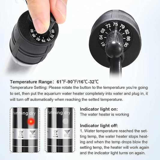 petzlifeworld Imported Aquarium Fish Tank Glass Heater with Free Thermometer | IP 68 Water Proof | Blast Proof by Petzlifeworld