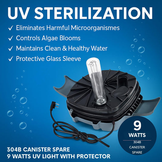 PetzLofeWorld Sun-Sun 304B Cannister Spare 9 Watts UV Light with Protective Glass Combo – Removes Water Cloudiness, Algae Control & Water Sterilization | Easy Installation