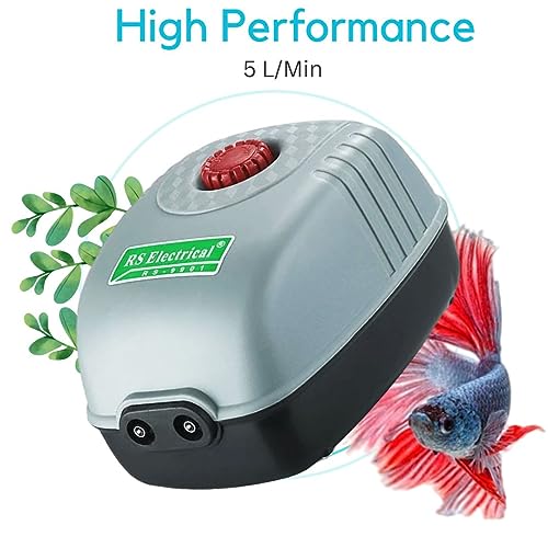 RS Electrical (RS 503) Low Noise Air Pump For Aquarium Fish Tank with Airtube, Air Stone & Ckeck Valve | High Performace | Two Outlet | Power : 3.0W | Output : 0.020*2L/min | Suitable For 200-300 Litre Tank