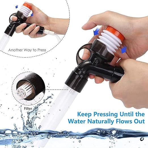 Quanlong (Press Type QL-08G) 3 in 1 Aquarium Gravel Cleaner | Water Changer with Glass Algae Scrapper | Suitable for Aquarium Height 92CM