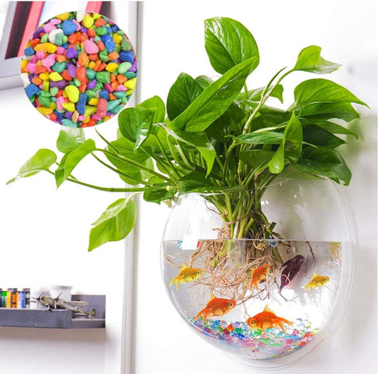 Petzlifeworld Acrylic White Wall Hanging Bowl (with Free Stones) for Fish and Indoor Water Plants Wall Decoration