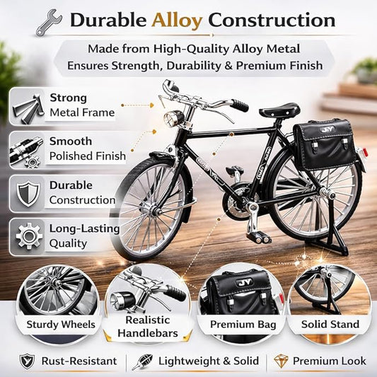 Petzlifeworld Mini Retro Alloy Bicycle Model – Classic Black DIY Bicycle Figurine, Vintage Style Desktop Ornament, Alloy Metal Bicycle Model Kit with Assembly Parts