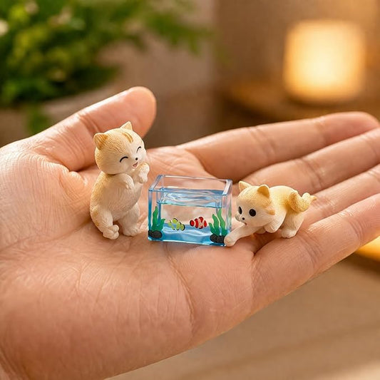 petzlifeworld (3 Pcs Set Mini Cute Cat & Mini Fish Tank | Resin Desktop Decor | Kawaii Cat Figurines for Desk, Aquarium, Dollhouse & Gift | Lightweight, Durable, and Vompact in Size