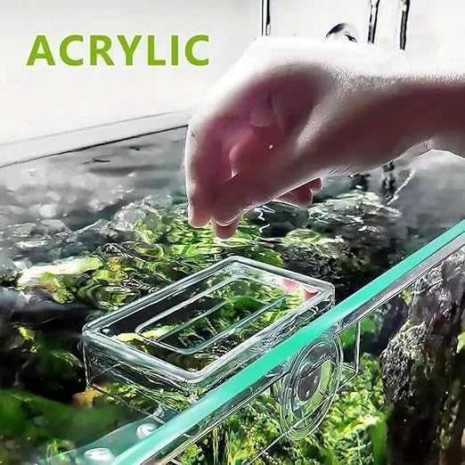 Petzlifeworld 1pc Rectangular Shaped Acrylic Fish Feeding Box with Suction Cup, Transparent Fish Feeder