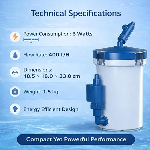 Sunsun YW-02B | 400L/H | 6W | Upto 3 Feet Fish Tanks, High Efficiency Aquarium External Canister Filter | Adjustable Flow Control | Multilayer Filtration System by Petzlifeworld