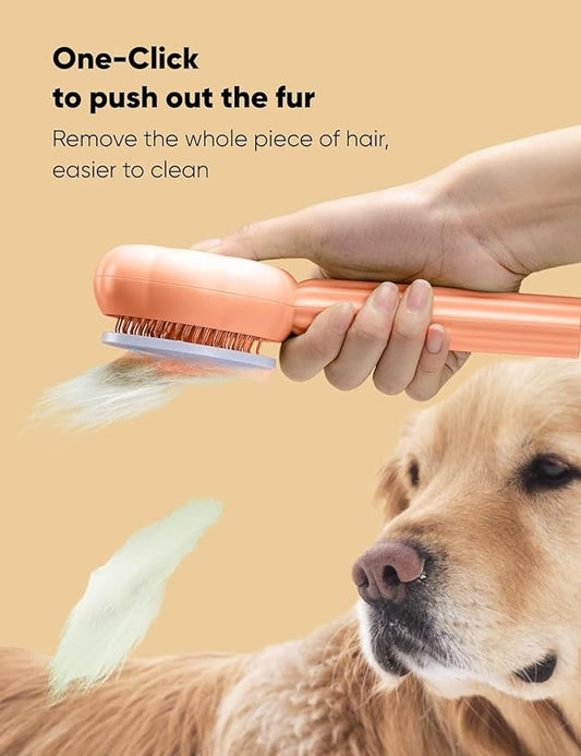 PetzLifeworld One Click Self-Cleaning Smooth Brush, Dog Cat Rabbit Pet Grooming Shedding Brush