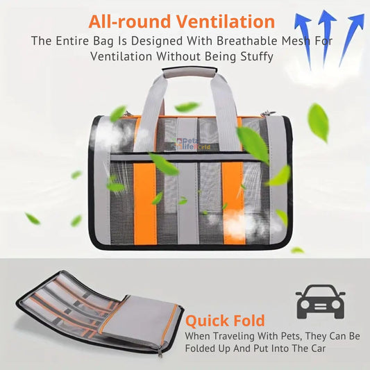 Petzlifeworld Cat & Dog Carrying Bag Outgoing Travel Pets Handbag Breathable - Grey with Orange