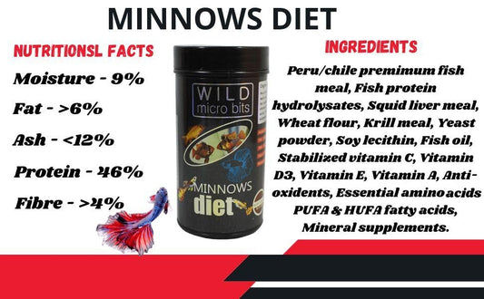Aquatic Remedies Minnows Diet - 0.6 mm Slow Sinking Granules | Feed for Ramirezy, Corydoras, Small Rainbows, Tetras, Bettas and Guppies (Medium (100G))