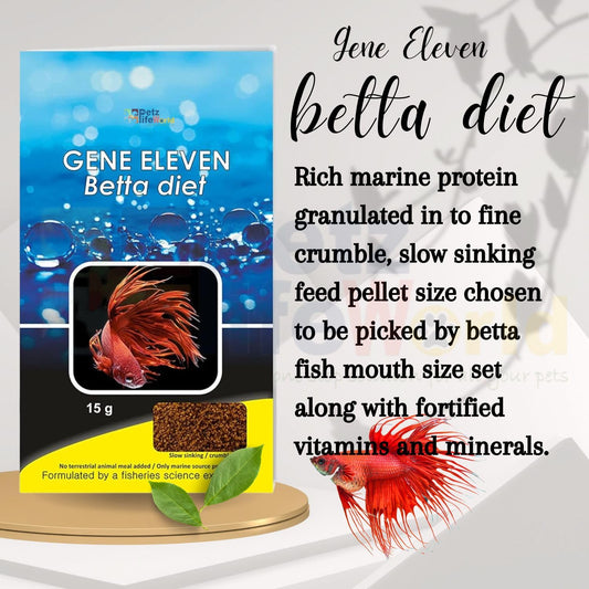 Aquatic Remedies Pack of 3 (3 * 15g) Gene Eleven Betta Diet Fish Food | Slow-Sinking Crumbles for Betta Fish