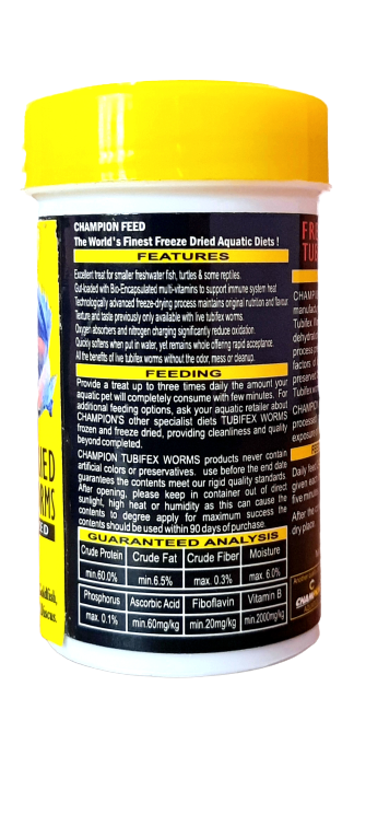 Champion Freeze Dried Tubifex Worms 40G | High Protein Food For all Tropical Fish