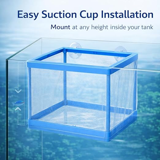 petzlifeworld FS-01 Fish Tank Breeder Net Box with Suction Cups | Blue Mesh Fry Saver for Aquarium | Isolation Box for Baby, Injured & Aggressive Fish