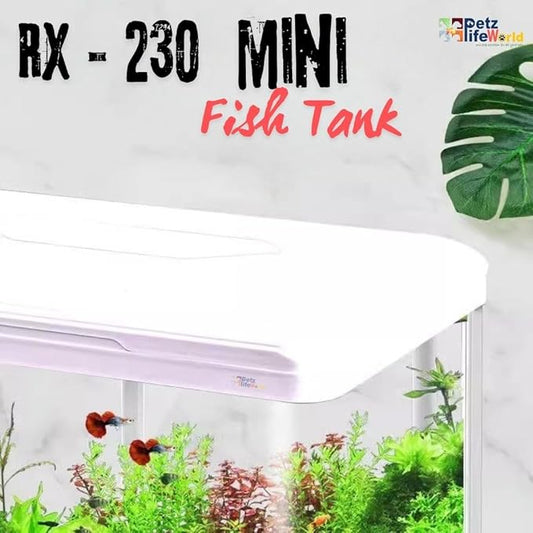 Petzlifeworld (RX-230 Pearling White) Aquarium Starter Kit Small Glass Betta Fish Tank Desktop with Filter Pump LED Light, Crystal Clear 360° Viewing, Shatter-Resistant & Leak-Proof Base
