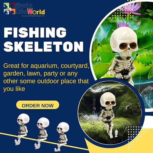Petzlifeworld Aquarium Fishing Skeleton Decoration, Mini Halloween Skeleton Toy