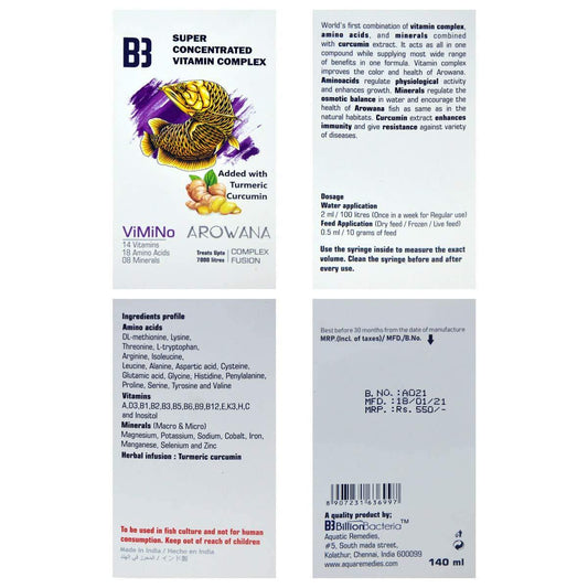 Billion Bacteria by Aquatic Remedies ViMiNo Arowana 140ml - A Complete Vitamin & Mineral Supplement for Arowana
