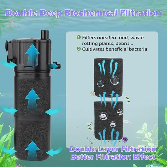 VAYINATO® BL-99E | 18W 4-in-1 Submersible Aquarium Internal Filter | 1000L/H Flow Rate | Adjustable Speed | Ultra Quiet | Ideal for 2 Feet Fish Tanks (Black)
