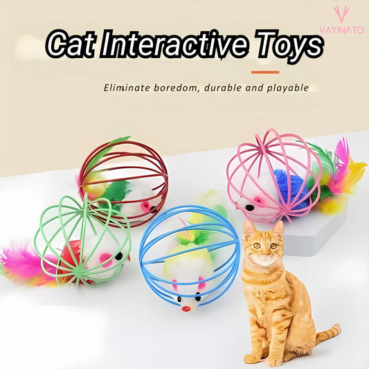 Petzlifeworld 3 Pcs Interactive Cat Metal Ball with Feather Mouse
