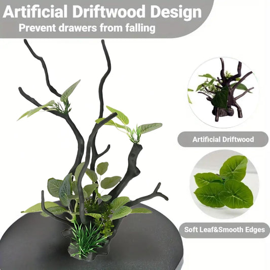 Petzlifeworld Artificial Driftwood with Leaf – Aquarium Plant Decoration for Fish Tank