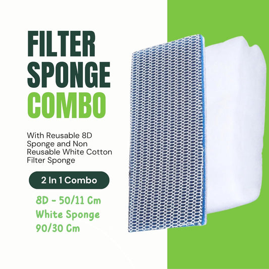 VAYINATO Aquarium Filter Sponge Combo – Reusable 8D Sponge (50x11cm) & White Filter Pad (90x30cm) – Mechanical Filtration for Fish Tanks, Sump Filters & Canister Filters