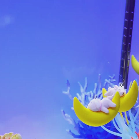 PetzLifeworld 2 Pcs Floating Yellow Half Moon Sleeping Pet Aquarium Toys Mini Fish Tank Attractive Cute Decoration, Miniature Resin Decors (Rabbit)