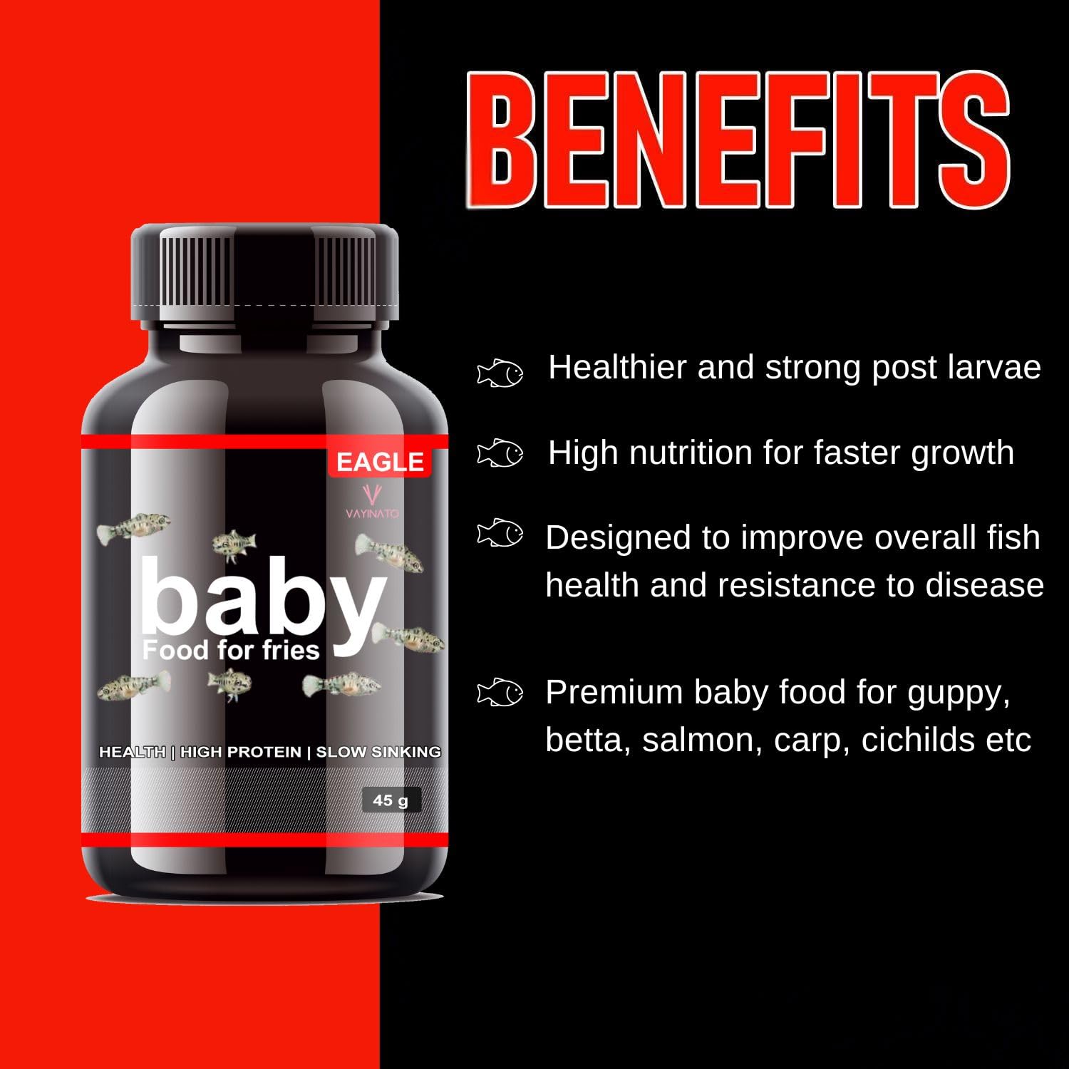 Eagle Baby Food for Fries (2 * 45g) High Nutrition for Faster Growth | Slow Sinking Food