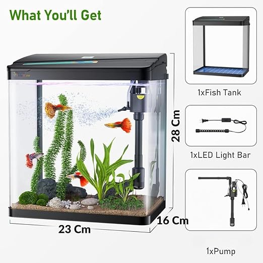 Best Small Fish Tank : The office desktop square small fish tank can raise betta, guppies, angel fish and other ornamental fishes. The fish tank is equipped with led lights, Filter and you can also buy other decorations by yourself. What's more, the small fish tank would be make you more happy and relaxed even in day or at night.