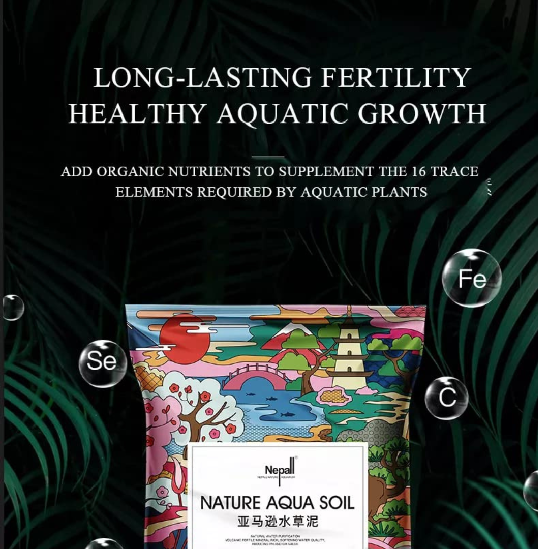 Nepall Soil World’s finest planted aquarium soil. Nepall Soil is suitable for aquatic plants and shrimp breeding. This substrate and soil is carefully selected raw materials with essential lava minerals heat processed up to 500 degree Celsius with strict quality control manufactured in the region Why the Nepall Soil? Lowers pH/kH of the water; create slightly acidic and soft water environment. Act as natural water conditioner, for the benefit of plants, fish and shrimp. Maintains water clarity for the longer time in the aquarium tank. Rapidly removes water cloudiness and supports aerobic bacteria. The matt texture and natural appearance of soil is good for shrimp breeding.Abundant plant nutrition bloom the growth of aquatic plants Recommended quantity to be use: Typical 12 x 10 x 12″ Tank: 3 liter (1 bag of 3 L) Typical 18 x 10 x 12″ Tank: 6 liter (2 bags of 3 L) Typical 24 x 12 x 14″ Tank: 9 liter (1 bag of 9 L or 3 bags of 3 L) Typical 36 x 18 x 18″ Tank: 27 liter (3 bags of 9 L or 9 bags of 3 L) Typical 48 x 18 x 18″ Tank: 45 liter (5 bags of 9 L or 15 bags of 3 L) INSTRUCTION Do not wash or rinse, fill the tank water slowly and disperse water to avoid disturbing substrate. Slight cloudiness may appear during initial set-up though it can be removed just in 1-2 hours of filtration of water. There may be slight stain of brown or black color on the aquarium glass and that can be rubbed off by hand or any other object. Presence of filmy layer may appear and this can be removed by circulating the water. This is a complete plant substrate in itself hence no need to cover it up with any gravel or use it as a bottom layer, simply put it in the tank and add water then start planting and done!