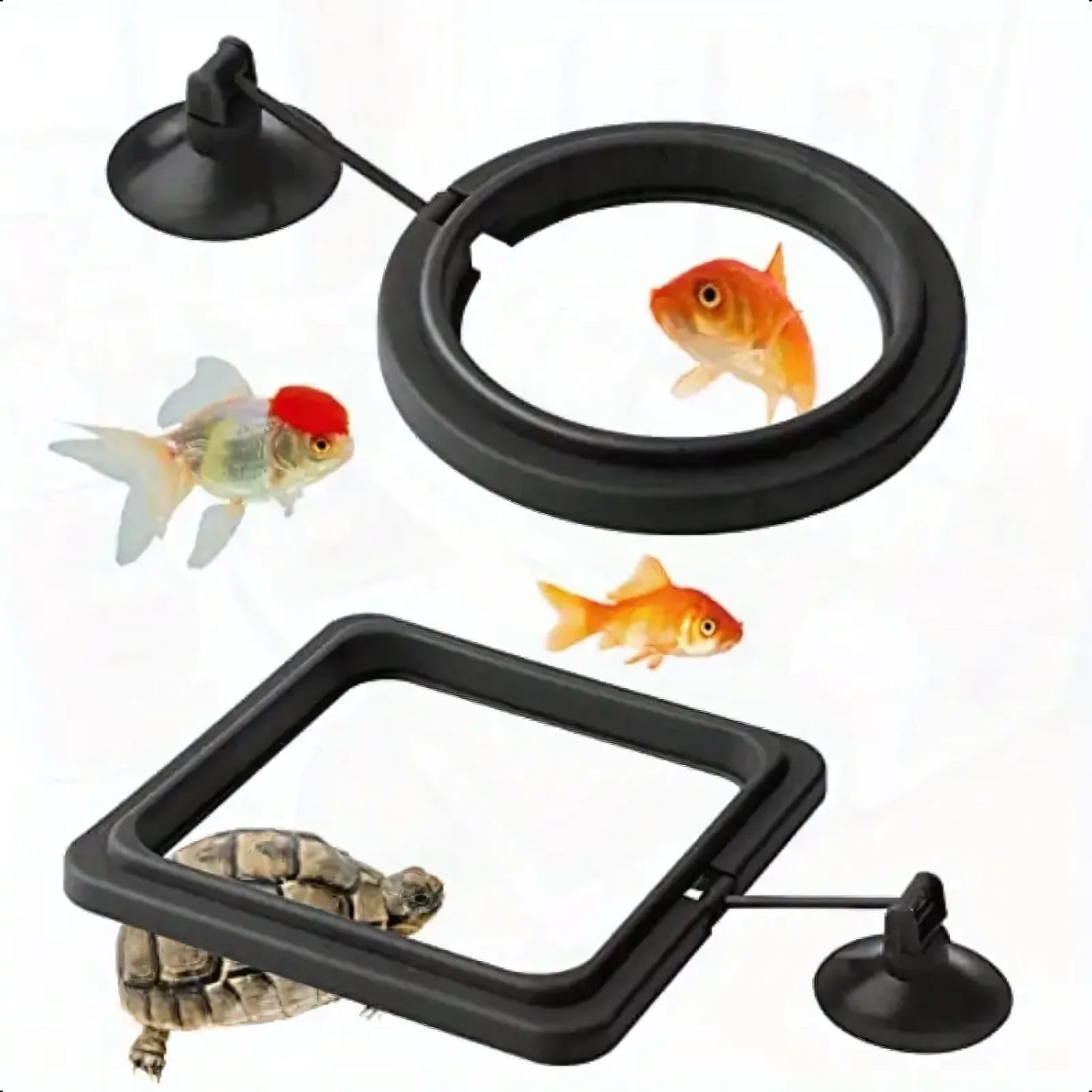 Petzlifeworld 2 Pcs Fish Feeding Ring (Round, Square) Black Food Feeder with Strong Suction Cup