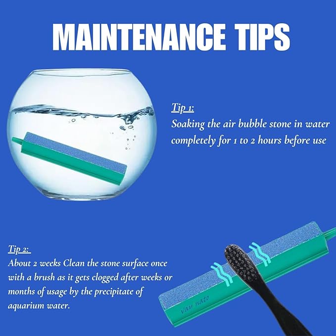 - ✔ USAGE -- Soak in water for 1 to 2 hours before use. When it is clogged with dirt or creating bubbles in a low rate, please wash it before reuse.This aquarium bubbler Stone releases the small, dense and uniform bubbles, which rise oxygen dissolve rate in water.