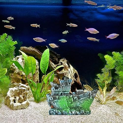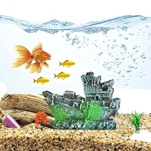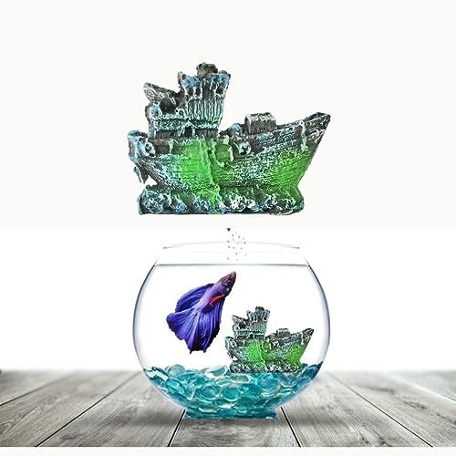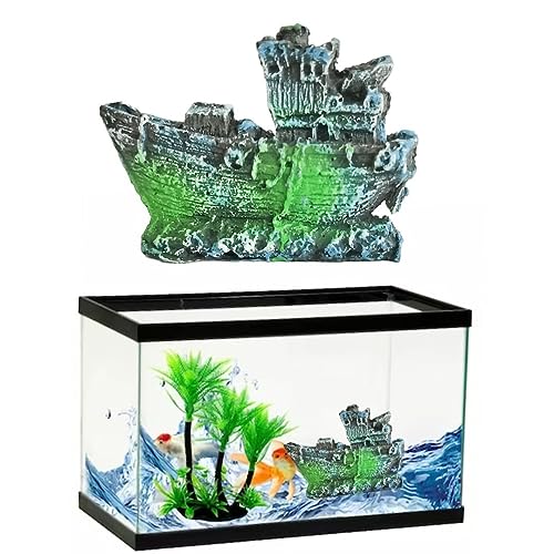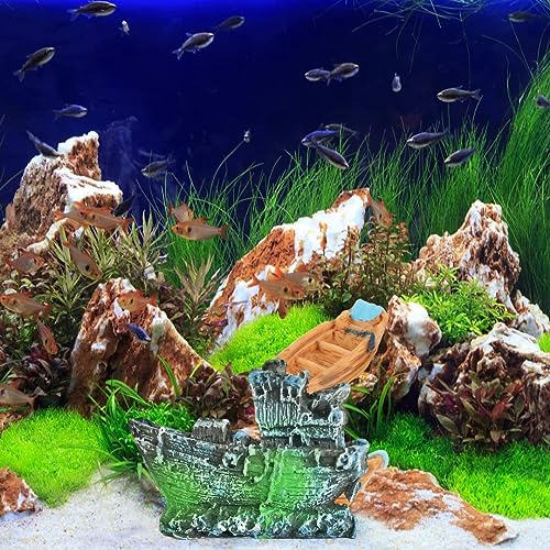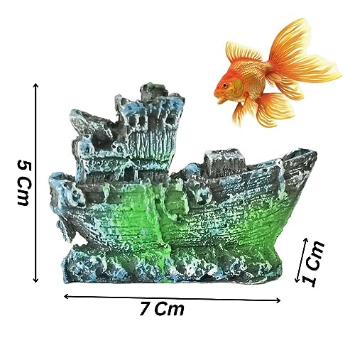 Petzlifeworld Aquarium Shipwreck Decorations Fish Tank Artificial Ornamnets | Sunken Ship Decorations | Fish Tank Landscaping | Natural Look (7 * 5 * 1 Cm)