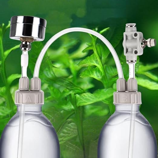 - ✔ EASY TO OPERATE : The pressure principle push the acid liquid into the small soda liquid,the two liquids reacting to produce continuous carbon dioxide. Easy to operate and designed for low cost planted tank use,to provide your aquarium plants a CO2 environment for better growing.