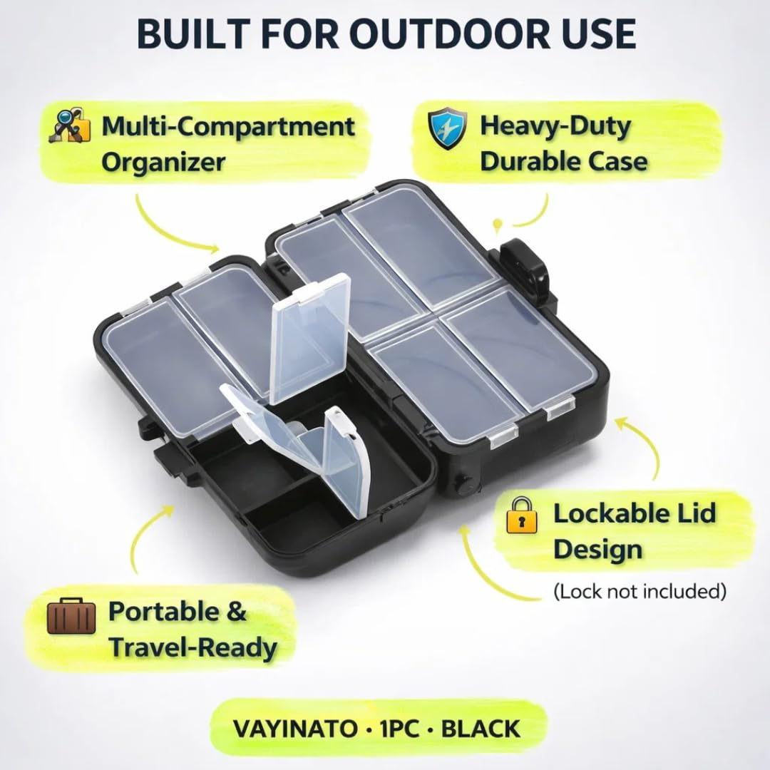 Featuring a secure lockable lid, your accessories stay protected from spills, dust, and accidental opening 🔒. Lightweight and portable, it easily fits into backpacks, fishing bags, or tackle kits—making it a must-have companion for every angler.