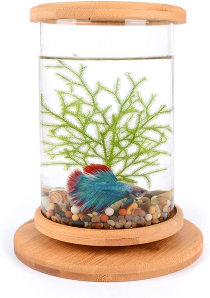 High-definition translucent high-quality glass, 360 ° no dead ends, clear and transparent, bringing unlimited viewing pleasure. Design: Unique design, 360° rotation, bamboo wooden frame and high transparent high boron glass contrast each other, which is both beautiful and transparent. Bottom: There is a black non-slip sheet on the bottom of the bamboo frame, which plays a role of non-slip. Material: Bamboo products have wood scarred knots, which are normal high boron glass, crystal clear, high-end and elegant viewing effect! Special LED lights, you can also enjoy the fighting fish in the dark. Under the light, the fish dances more gracefully and movingly!~ Material: Natural South Bamboo + High Translucent GlassColor: Log Color Specifications: Total: Diameter 14.5CM*Height 18CM Cylinder: Diameter 10CM*Height 15CM Remarks: The bamboo frame is spliced, with wood knots and spliced textures Inevitable, mind shooting carefully~ Notice: Please allow 1-3cm error due to manual measurement and make sure you do not mind before ordering. Please understand that colors may exist chromatic aberration as the different placement of pictures. Due to the difference between different monitors, the picture may not reflect the actual color of the item.