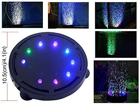 Suitable for Fish tank Decoration,Freshwater Aquariums, Office Fish Bowls,Saltwater Aquariums, Ponds,Hydroponics, Aquaponics 【Warm TIPS】This air bubble light CAN NOT generate itself,Need connect to air pump for air bubble billow effect. 【Waterproof】Great night light for wonderful nocturnal viewing, produces a impressive RGB colors air curtain,Excellent sealed designed, can be fully submerged in water. 【Performance】AC adapter: AC 100-240V,12 LED, Output: 12V, Cable Length: approx 1400mm Diameter: 12.5CM 【Lifetime support】If any question about the product,please feel free to contact-us,we will repsond in 12 hours.