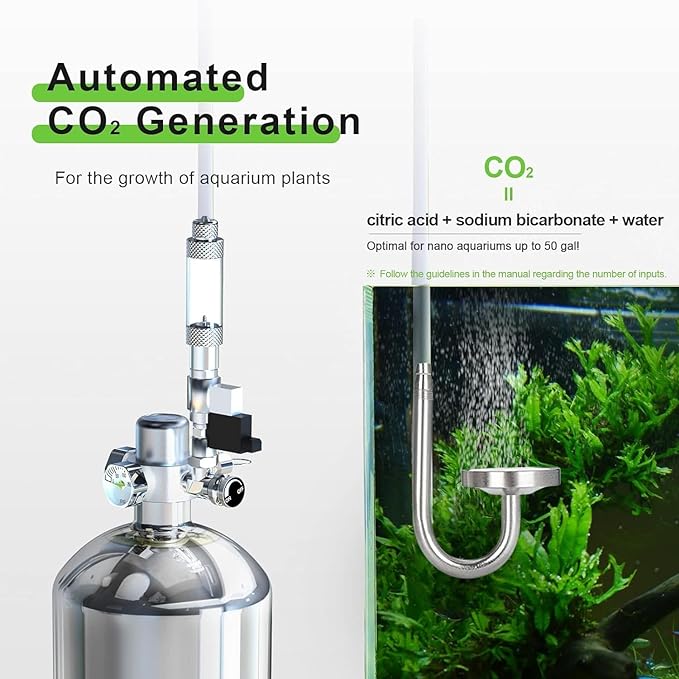 - Aquarium CO2 DIY System: Easily create your grow tank CO2 supply system. You only need to prepare 2 carbonated drink bottles and ingredients (citric acid and baking soda).