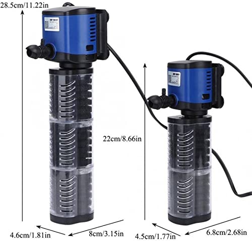 - 🌹[IDEAL FOR 3-4 FEET TANK] The pump of the submersible fish tank filter operates with a high-strength permanent magnet rotor noise reduction system inside, and three silicone cushioning suction cups on the outside, which can greatly reduce noise <35db and firmly secure in-tank installation. Fits 3-4 feet tank fresh/salt water fish tanks turtle tanks.