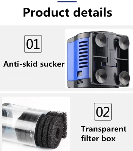 - 🌹[DIRTY VISIBLE & REUSABLE] The Transparent box design of this internal fish tank filter allows the filter cotton to be visible when it is dirt. The sponge is easy to clean and reusable, you can replace other filter media to show your personality, such as ceramic balls/carbon stone/carbon cotton, etc.