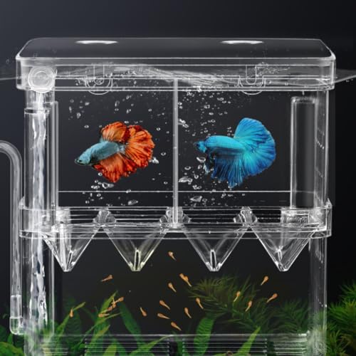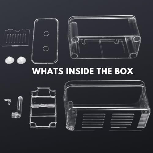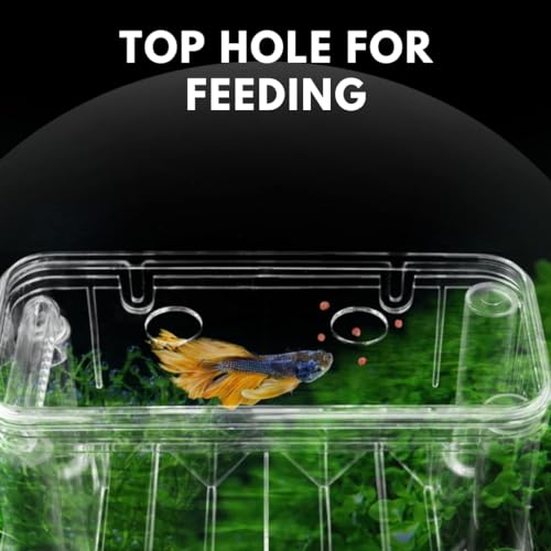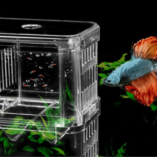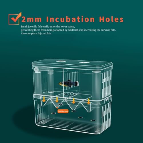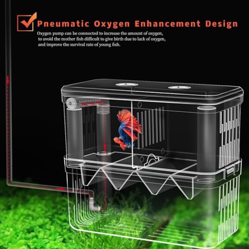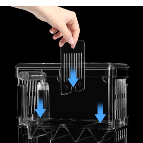 Multifunctional X-Large Fish Breeder Box Fish Tank Divider for Aggressive / Injured / Pregnant Fish This breeder box for fish tank can be connected to the air pump (not included). And it comes with self-contained isolation plate, can reduce danger from aggressive fishes, protect injured fish, small fish, shrimp, and other sea clownfish. Isolation Function The acrylic feeding incubator can isolate aggressive fish, injured fish or small fish that prevents adult fish to attack juvenile fish. Self-floating design Fish Breeding Box Feeding Cover Design The feeding cover of the fish tank incubator makes it easier to feed the fish and prevents her from jumping out.