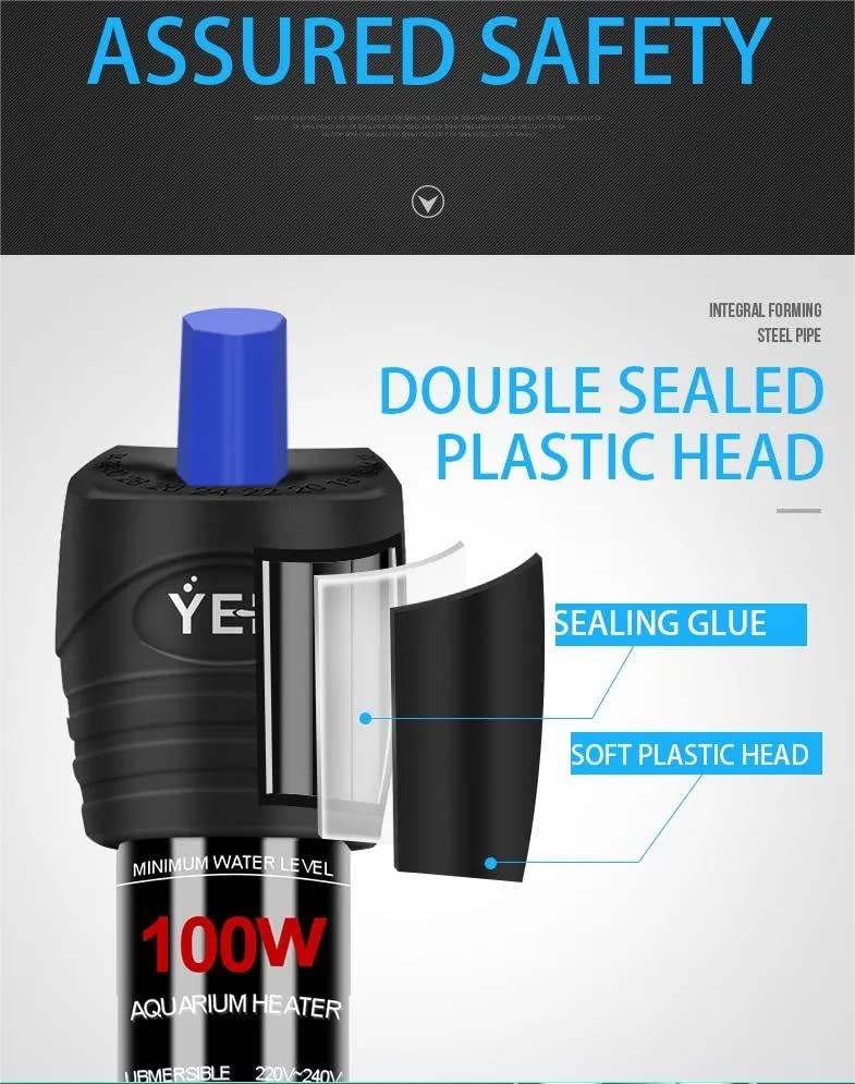 YEE SS 304 Grade Stainless Steel Completely Submersible Automatic Aquarium Fish Tank Heater (300 Watts)